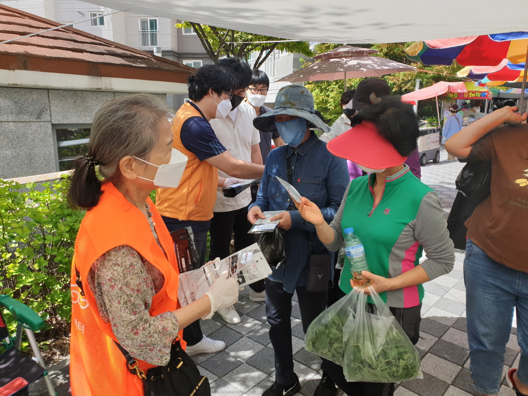 내용 : 장터에 방문한 손님에 한해서 구매한 물품을 손수레를 이용해 차량까지 옮겨주는 사랑의 손수레 활동과 예천사랑주민행복캠페인 "안전하세요!" 활동을 통해 KF94 마스크 나눔 및 야간반사스티커 부착 및 나눔 활동을 진행하였습니다.