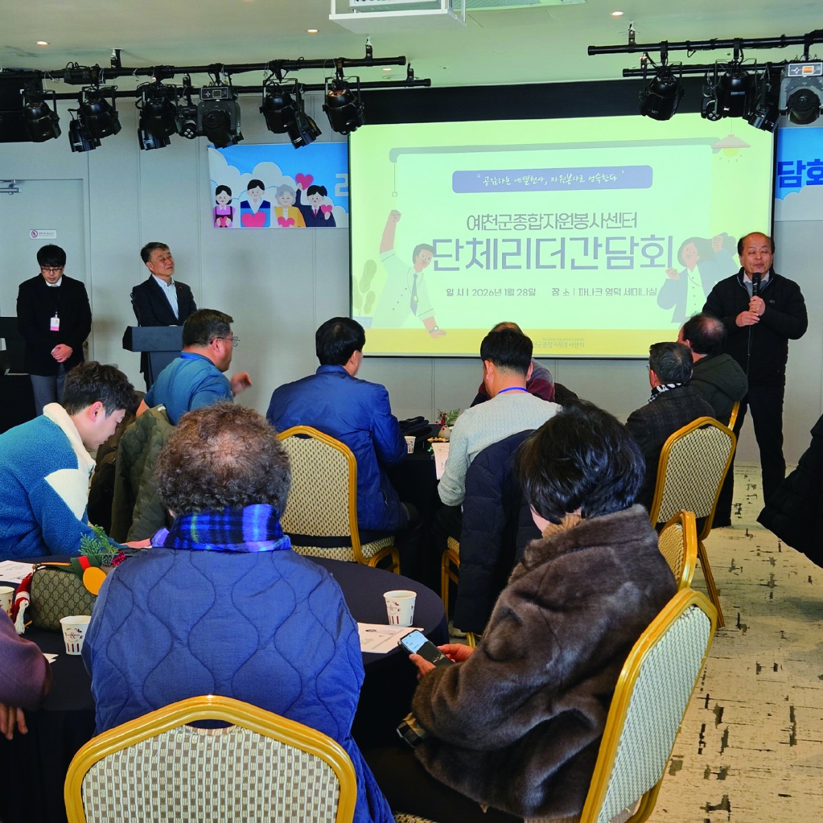 2026 자원봉사단체 리더 간담회 페이지 정보 작성자관리자 댓글 0건 조회Hit 288회 작성일Date 26-02-02 10:15 본문 일시 : 2026년 1월 28일 수요일 장소 : 영덕 파나크 호텔 9층 세미나실 참석자 : 관내 40개 자원봉사단체의 리더 및 관계자 등 50명 내용 : 자원봉사단체 간 협력 강화 및 리더 역량 강화를 위한 간담회 목록 이전글2026년 설맞이 떡국나눔 행사 26.02.11 다음글2026 가족봉사단 연합회 26.01.23 댓글목록 댓글목록 등록된 댓글이 없습니다.